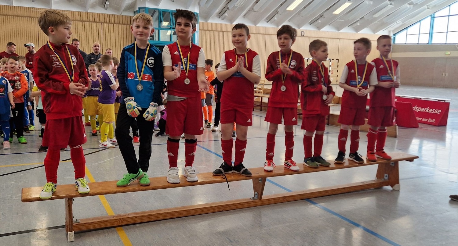 Es war am Sonntagvormittag das 3.Turnier der ersten Turnierrunde und siehe da, die F-Junioren unserer Spielgemeinschaft erzielten ihr bisher bestes Ergebnis. Kontinuierliches Training scheint sich inzwischen auszuzahlen, denn nur gegen den SC Bernburg mussten unsere Jungs knappe Niederlagen hinnehmen, was sich am Ende auch in der Tabelle ausdrückte. Allerdings mussten unserer Kinder ihre Spiele erneut mit einem Spieler weniger bestreiten, was dem Spaß am Spiel aber wohl nichts ausmachte. Schön wäre es trotzdem, wenn wir zukünftig eine vollstandige Mannschaft zu den Turnieren aufbieten könnten.