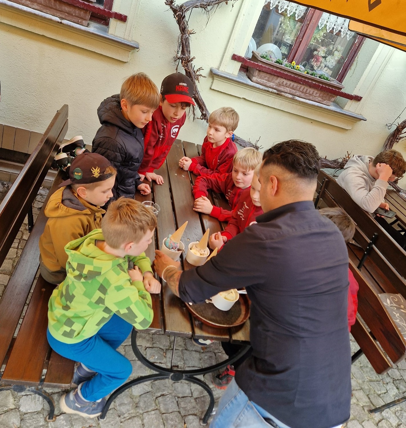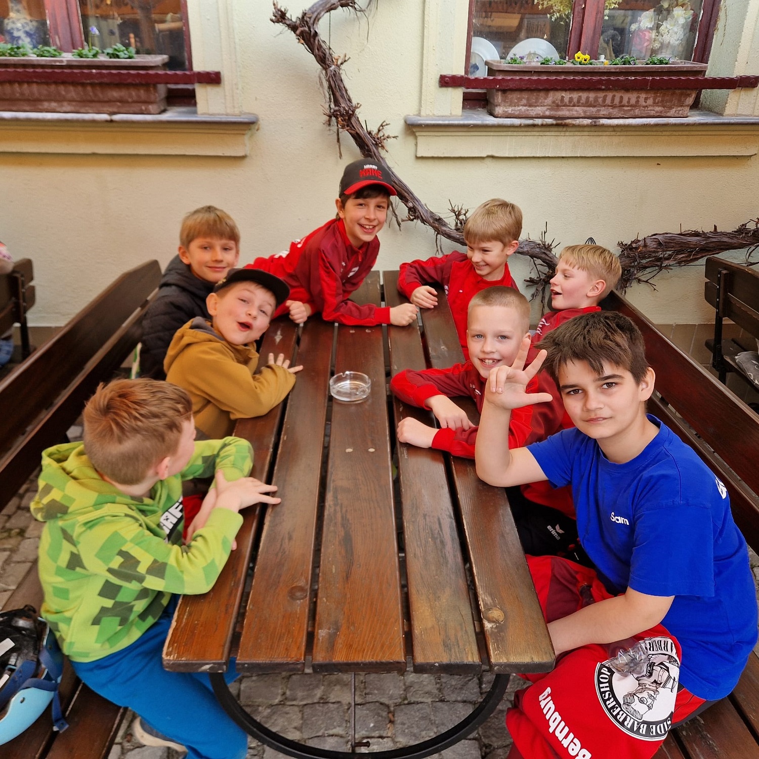 Gruppenfoto aller Teams / Verdienter Lohn für ein gute Leistung beim Teamchef im „Alten Markt“