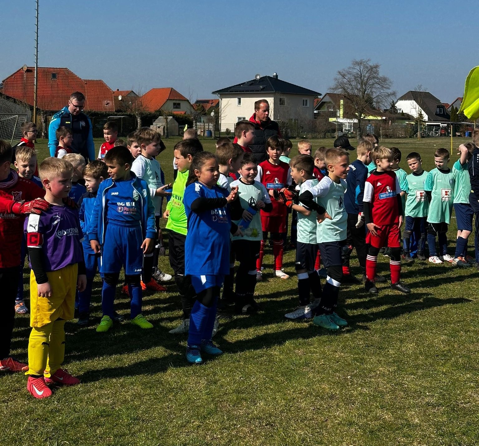 Die Jungs unserer Spielgemeinschaft hatten am Samstag ihr erstes Heimturnier. Gespielt wurde auf dem Kunstrasenplatz des SV Einheit auf zwei Spielfelden. Die Einheitjungs traten dieses Mal ohne Verstärkung durch ältere Jahrgänge an, hatten aber nur 6 Spieler zur Verfügungen, die so bei dem sommerlichen Wetter immer in Unterzahl spielen mussten, weil die Gegner zu einer Lösung im Sinne des Fair Play leider nicht bereit waren. Dafür kämpften unsere Jungs aber tapfer, auch wenns dem einen oder anderen schon manchmal schwer fiel und sie im Training noch ganz, ganz viel lernen müssen. Wichtig ist, dass die Kinder regelmäßig und zuverlässig beim Training erscheinen und da sind eher die Eltern in der Pflicht!