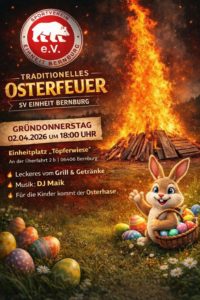 Zur Eistimmung auf die Feiertage hießen wir traditionell auf dem Einheitplatz zum Osterfeuer wieder „Herzlich Willkommen !“ Einige hundert Besucher folgten unserer Einladung und mussten ihr Kommen nicht bereuen, denn ob für groß oder klein wurde ihnen Einiges geboten. Kulinarisch fehlte es an nichts, genauso wie an den nötigen Kaltgetränken. Für die Kleinen waren der Osterhase und Einheitmaskottchen Loberto mit Süßigkeiten und bunten Ostereiern unterwegs und für eine prächtige Stimmung sorgte DJ Maik, der sich in toller Form präsentierte. Ein großes Dankeschön an die Organisatoren, den Vostand des SVE um Neupräsident Mathias Müller und an seine fleißigen Helfer und Helferinnen für dieses erste großartig gelungene Event 2025!